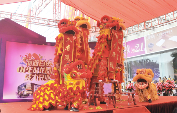 开业庆典当天得到市区领导高度重视,同时也邀请到香港著名影星袁文杰到场助兴,精彩的当地特色舞狮表演赢得围观市民阵阵喝彩。9月29日至10月7日,不仅有精彩的小丑表演、cosplay展示、财神送财等精彩活动,还有时下火热玩偶小羊肖恩大派送,更有购物现金满200元即有机会抽得金条、钻戒、山地车等豪礼,9月29日至10月1日期间,多个品牌深圳最低折扣限时抢购。为庆贺海百货龙岗店盛大开业,海雅商业普店同庆,都纷纷推出重磅优惠活动,更多精彩资讯,请时刻关注海雅百货官网及各店官方微博。